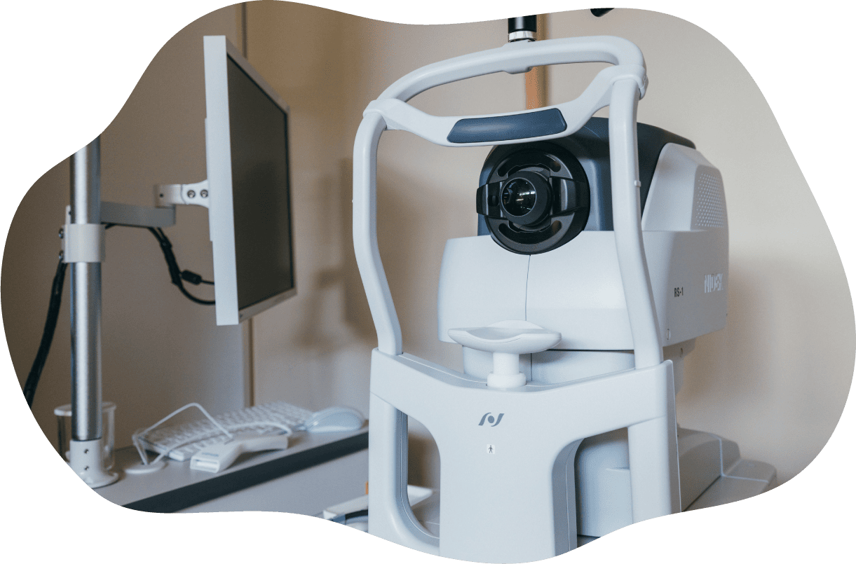 - 網膜や視神経の断層画像を撮影する機器です。従来より圧倒的に高速で、高解像度の撮像が可能なため、網膜疾患や緑内障の早期発見・経過観察に役立ちます。